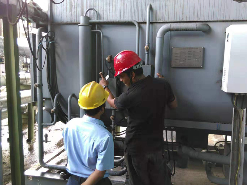 The 880kW steam single-effect absorption chiller of Indonesia's Jinguang Group Paper Mill. The project uses 0.15MPa waste steam from the paper mill to cool the control room of the large papermaking equipment in the plant.