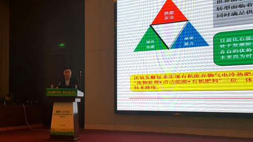 In order to implement the spirit of the "Opinions on Accelerating the Utilization of Waste from Livestock and Poultry Breeding" and other documents of the General Office of the State Council, conscientiously do a good job in the utilization of waste from livestock and poultry breeding in the province. Recently, the 2017 Shandong Livestock Manure Resource Utilization Conference Summit Forum hosted by the Shandong Provincial Animal Husbandry and Veterinary Bureau was held in Jinan. The New Energy Research Institute of our company was invited to participate in the conference, and Xu Pan, the director of the New Energy Research Institute, made a report entitled "Poultry Manure, Waste Gas, Electricity, Cooling, Heating and Fertilizer Polygeneration Technology (Introduction to the Research Results of the 863 Program)".