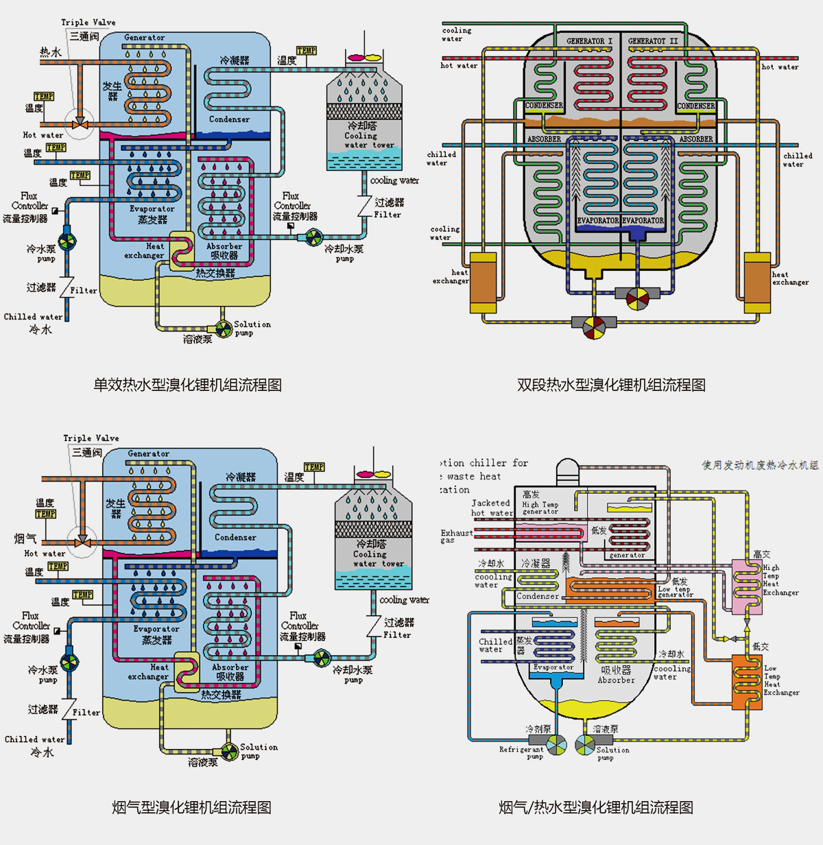 The cooling, heating and power system adopts different waste heat recovery methods according to the principles of economy and energy. The main parts of the absorption chiller used are as follows: