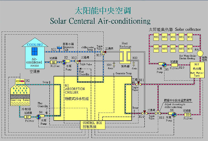Solar air conditioning is driven by clean solar energy. the system meet the requirements of environmental protection. It not only saves power and fuel, energy conservation and environmental protection, but also almost zero emission. It is fully meet the requirements of sustainable development strategy.