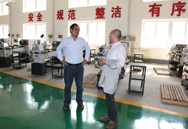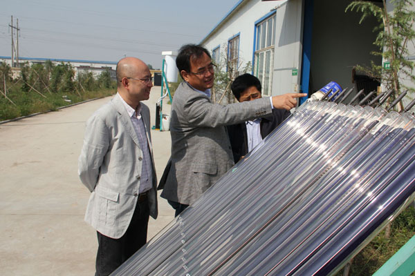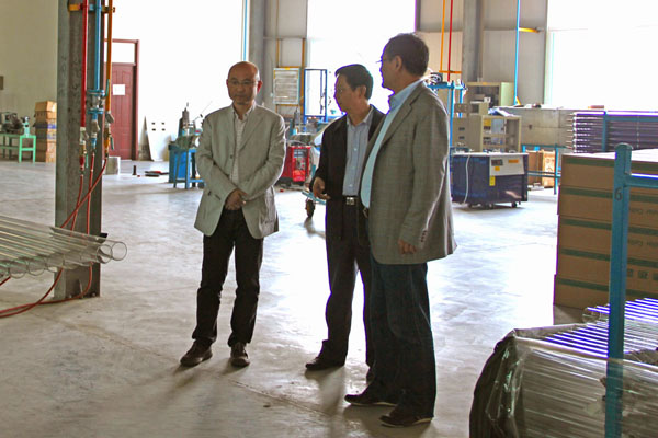 General Manager Lu came to Solar Energy Research of Lucy New Energy Company, and investigated production workshop of high temperature solar collecting tubes. He had a detailed understanding about production, research and development of production line. In the meantime, Chairman Jin introduced plant planning and construction of solar energy central air condition and biomass vacuum boiler.