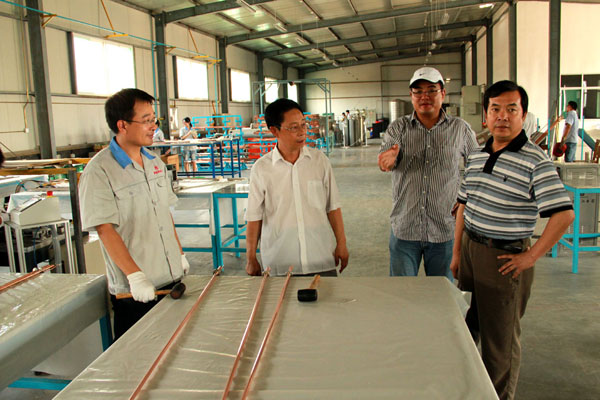 Chairman Jin Delu put forward the Curtain Wall Split Top solar Energy Water Heater, aimed at the inconvenience of the flat wall mount water heater’s problems in the aspects of safety, beauty, snow and dirt cover and efficiency. All the attendees expressed strong interest in this technique. They all agreed that our products have good function of fast starting, high heat collecting temperature, good high absorbing efficiency, small heat losing, beautiful appearance and safe using. Section Chief Wang Runxiao said our mid-high temperature solar energy technology improves the breadth and depth of solar thermal utilization, enhancing the technical level of solar energy industry in Shandong province. He expressed he will assist us to hold the first Qingzhou mid-high temperature solar energy application forum and model project demonstration.