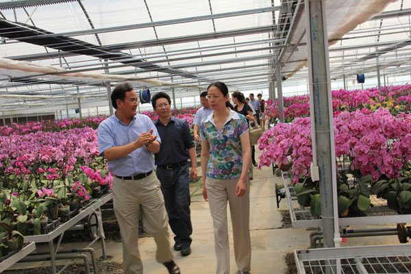 Accompanied by Chairman Jin, guests visited the Orchid storehouse and tissue culture room of Qingzhou Flower Research Institute, Shandong Lucy Machinery Co., Ltd, Shandong Lucy New Energy Technology Co., Ltd, training workshop of Lishan College, Qingzhou Inzone Garland and Qingzhou International Conference Center. The investigatory group spoke very highly of our concept of school-enterprise integration and production-research- development integration.