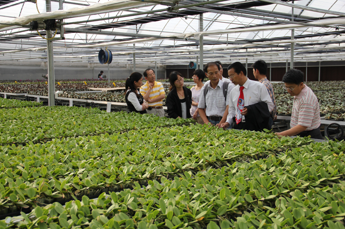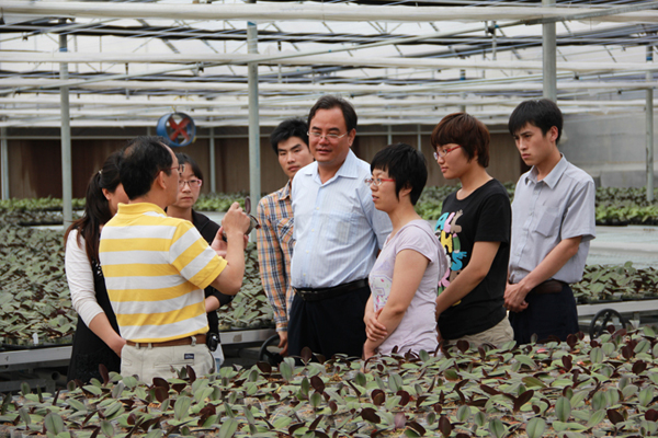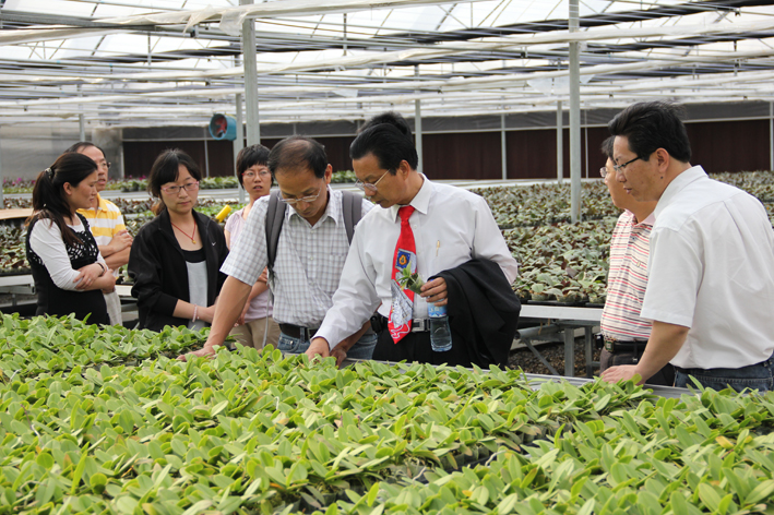 Chairman Chen came to our flower base—Qingzhou Flower Research Institute to inspect the development of the project. It was just one year since they signed the cooperation agreement on Jun 9th last year. The two parties made a bargain to found Shandong Today Lucy Biological Technology Co. Ltd, and decided to working in close collaboration in breed development, tissue culture production, orchid cultivation and personnel training. With mutual efforts, a scientific research organization with advanced facilities was founded. Chairman Chen listened to the report of the delegate and examined the growing of the orchids, and then he arranged the next assignment. Chairman Chen was very satisfied with the notable achievement. He hoped our group could undertake the moving of Lishan College and promote collaboration of education on both sides of the straits.