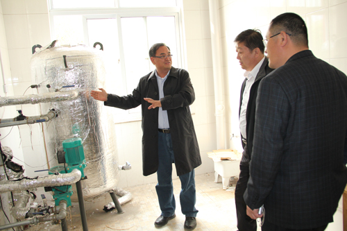 In April 21st, the Secretary Cao and County Liu of Mengaiti County Party committee in Xinjiang investigated our company. During this inspection tour, Chairman Jin showed them around Solar heating system of Chuantai Hope Primary School of Wangfen County in Qingzhou, Solar Central Air Condition System of the Sun House and the workshop of training building of Lishan College, Shandong Normal University and Flowers Research Institute, introducing the working principle of solar central air condition system in detail. After Carrying out extensive exchanges about popularizing solar energy heating system in Mengaiti County, Both sides believe that solar power in Xinjiang has an extensive application space, should make joint efforts to promote energy-saving and emission-reduction for constructing a solar demonstration county.