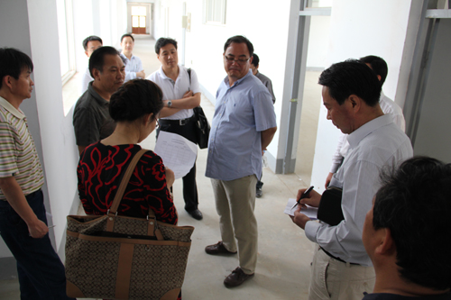 In the morning of May 11th,Vice President Zhong Duren of Shandong Normal University , Dean Chen Huanzhen of Lishan College, Secretary of the Party Committee Zhang Jingdong of Lishan College,Dean Meng Xiangzeng of Media and Communication College, Vice Dean Wang Chunxing of Physical Electronic College, Vice Dean Dai Meixue of Life Science College, Director Liu Yufa of Chemical Engineering College, Dean Sun Fengzhi of Tourism Management College and Director Wang Qiuliang of LIshan College came to Qingzhou campus to guide work. They built a working group for the establishment of the laboratory construction. They exchanged views on the campus laboratory construction and layout planning. Then, they visited office building, library, laboratory building and training building.