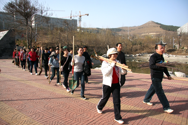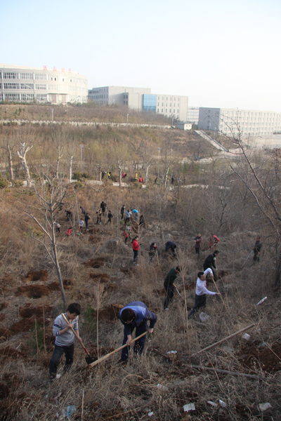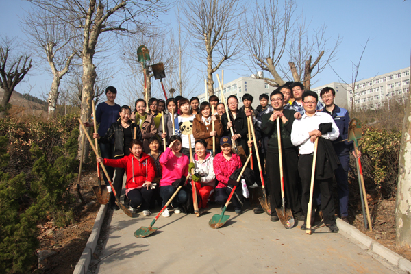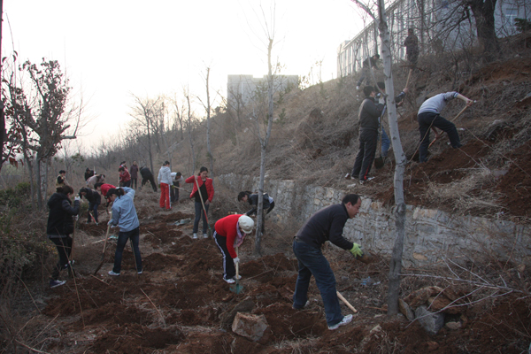 On March 8th, more than 60 people from Real Estate Company and Qingzhou Inzone Garland Hotel came to Lishan College and planted trees to achieve the Campus environment "hardening, green, landscaping.
