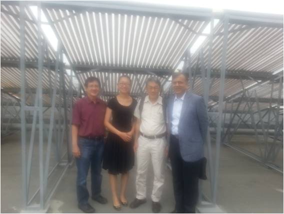 9月4日,新加坡ACMV PTE LTD郑工到禄禧新能源考察太阳能空调,禄禧新能源董事长金德禄教授、总工程师王红斌教授接见来宾,新加坡销售公司Mr.Alvin 和Mr. Ashok陪同考察。
