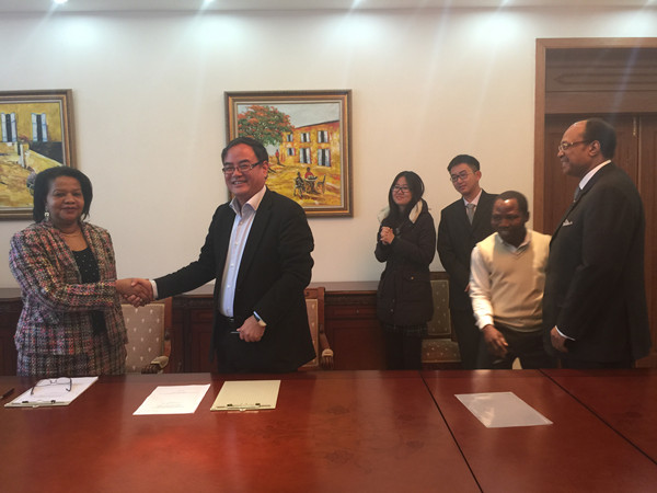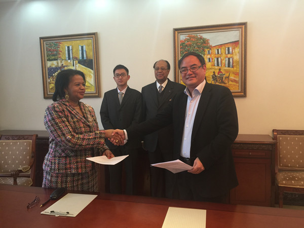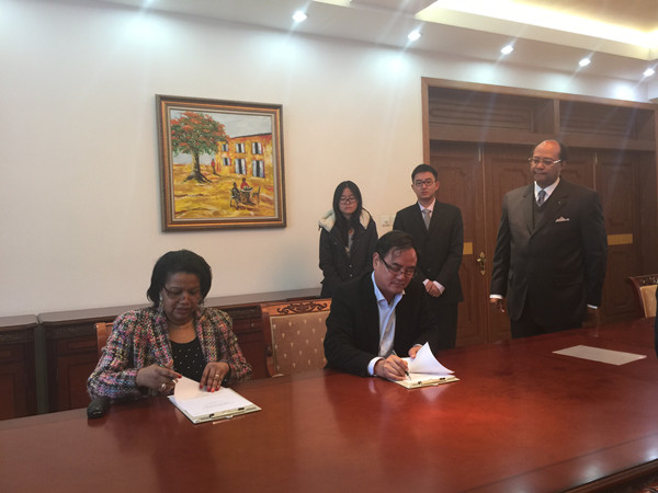2015年1月4日,我公司与SEBOHMI GROUP在北京贝宁大使馆举行签约仪式。贝宁驻华大使阿比蒂先生、SEBOHMI GROUP CEO、我公司金德禄董事长出席签约仪式。