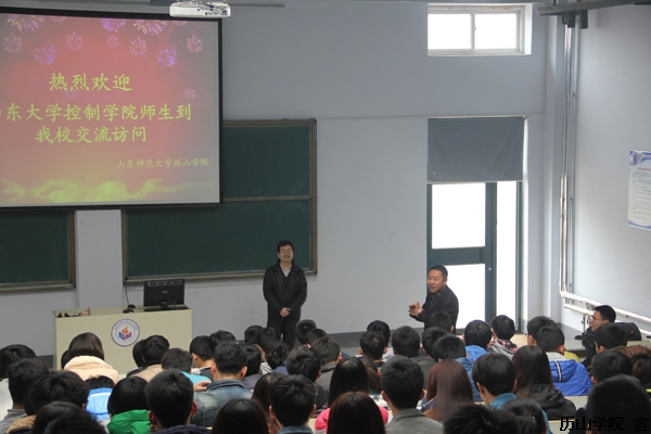 Xu Pan did a academic reprot of "solar thermal, photovoltaic product of series of central air conditioning and engineering application " for the visiting students , students on the new energy products showed great enthusiasm, and highly admired my school training conditions . Shandong University students and our college 2013, 2014 automation professional students open up a fresh outlook Symposium about professional courses, postgraduate, extracurricular competitions. On exchange meeting, associate professor Li Xiaolei introduces the characteristics and development direction of automation to the students, encourage students to cherish the training condition is superior in Lishan college, actively participate in practice, self-confidence, enhance their competitiveness, and patiently answered the students about the test research, work and other issues. After the exchange, Shandong University teachers and students visited the Qingzhou ancient street, a taste of the charm of ancient culture.