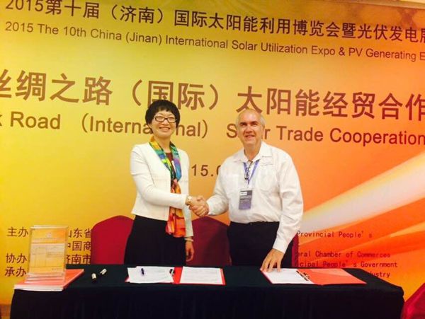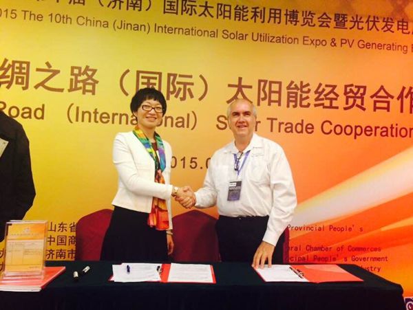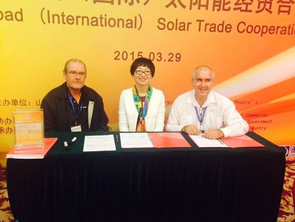 随后,副总经理孟晓丽与海外买家团奔赴济南,参加丝绸之路(国际)太阳能经贸合作论坛,并与澳大利亚两家公司签署了合作意向书。