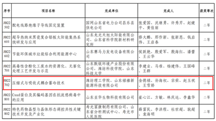 9月16日,潍坊市科技局公布了2022年度潍坊市科学技术奖获奖名单,由潍坊理工学院与山东禄禧新能源科技有限公司共同完成的“压缩式与吸收式耦合蓄冷技术”项目,荣获潍坊市科技进步二等奖。